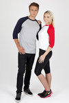 • Mid-weight 190-195gsm 100% cotton with spandex rib and 3/4 raglan sleeve.